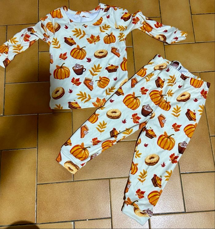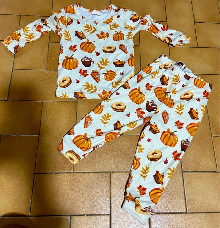 Pyjama 2 pièces  creme motif automne 2 ans  - photo numéro 1