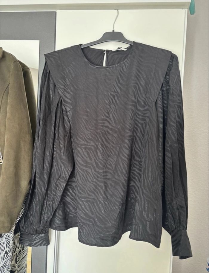 Blouse noire zébrée avec épaulettes – Camaïeu – Taille XL – Neuf avec étiquette - photo numéro 2