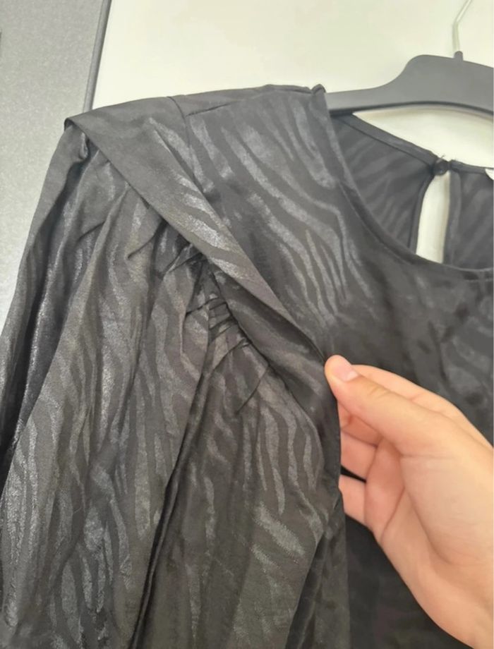 Blouse noire zébrée avec épaulettes – Camaïeu – Taille XL – Neuf avec étiquette - photo numéro 4
