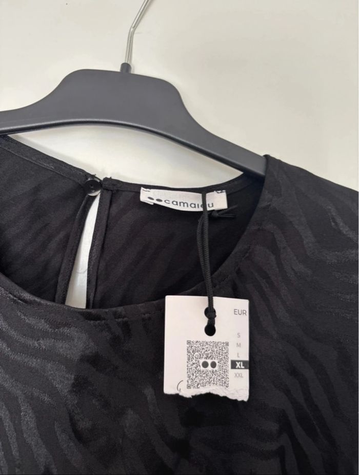 Blouse noire zébrée avec épaulettes – Camaïeu – Taille XL – Neuf avec étiquette - photo numéro 7