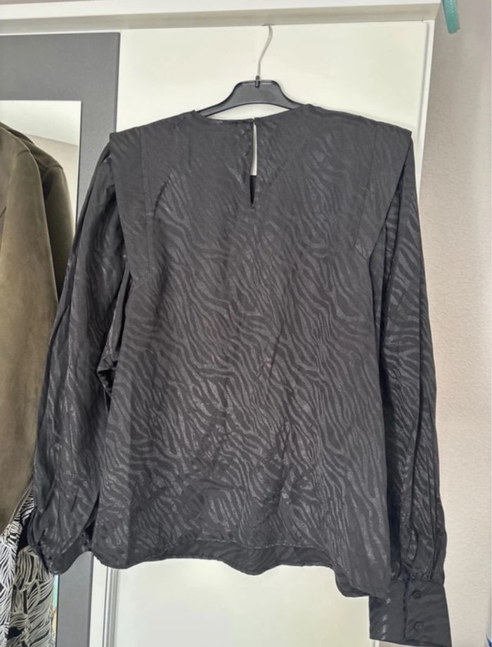 Blouse noire zébrée avec épaulettes – Camaïeu – Taille XL – Neuf avec étiquette - photo numéro 3