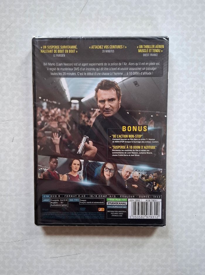 Je vends un dvd Non-Stop avec Liam Neeson. Neuf, encore emballer. Zone 2 : lisible dans tous les pays de L'Union Européenne.