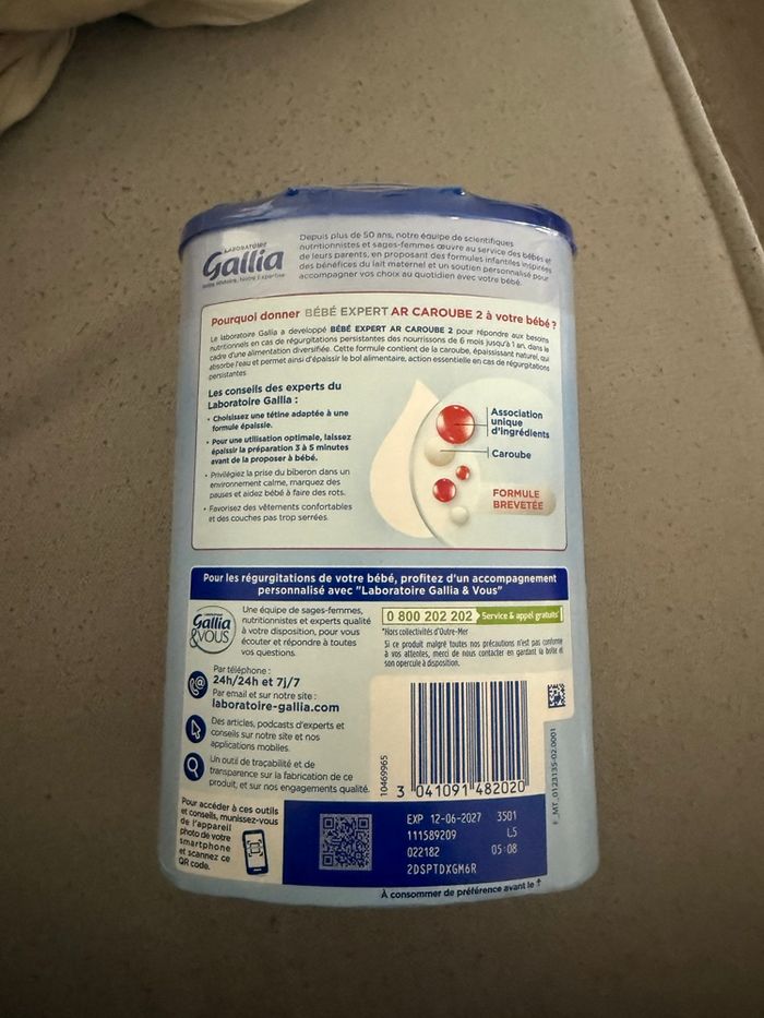 Lait Gallia AR Caroube 2e âge. Lot non concerné par les rappels