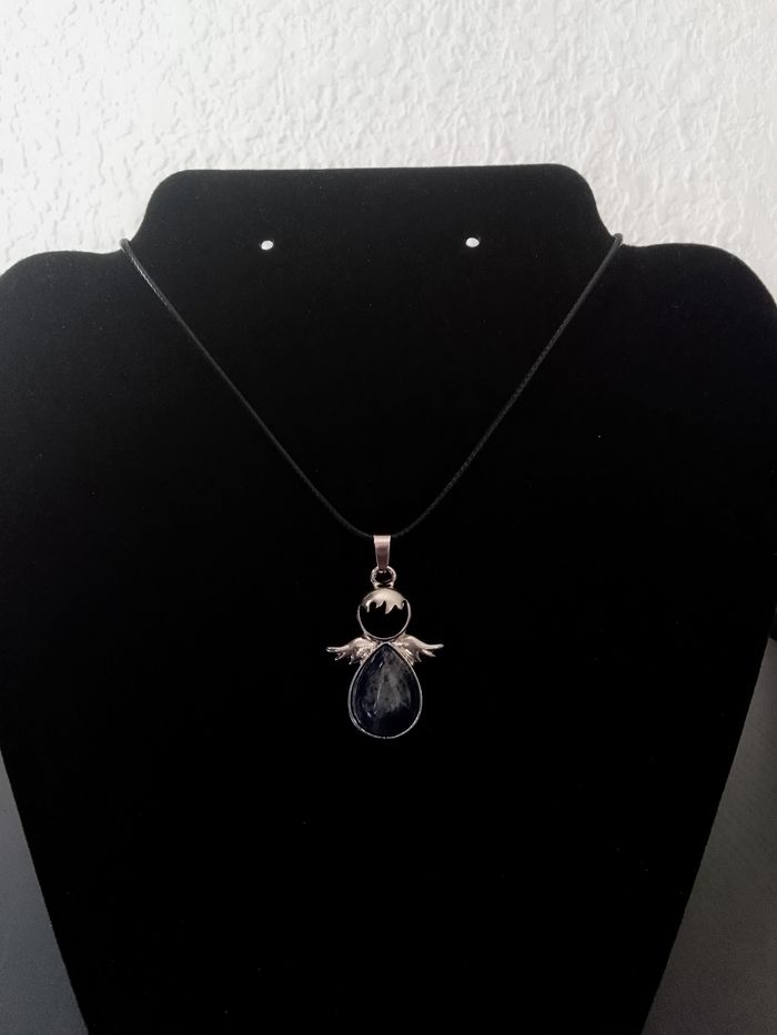 Collier corde de cire + pendentif spirituel. Pendentif : ange. (spirituel, protection, bohème, idéal cadeau) DESCRIPTIF : Couleur : violet, argenté. Taille chaîne : 45 cm + 5 cm Diamètre pendentif : 2,5 cm L * 4,3 cm H Envoi rapide et soigné.