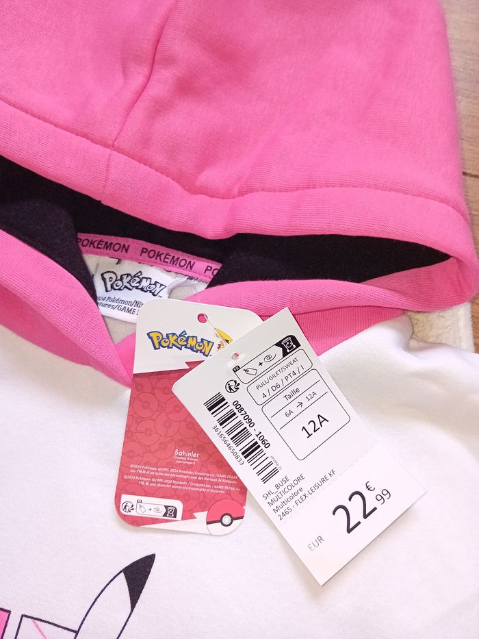 Sweet à capuche Pokemon pikachu Taille 12ans Coton/polyester Neuf avec étiquette