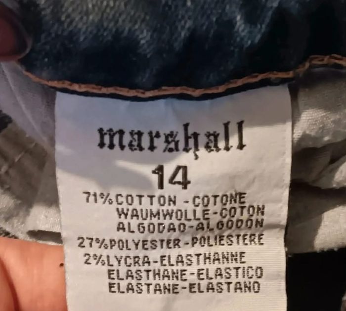 Superbe jean skinny de la marque Marshall, coloris bleu denim foncé avec un bel effet délavé naturel. Ce modèle se distingue par ses jolis détails de nœuds au niveau des chevilles et sur les poches arrière, apportant une touche féminine et originale. Marque : Marshall Taille : 14 ans (convient aussi à un XS selon les mesures) Coupe : Skinny / Moulant État : bon état Composition : 71% Coton, 27% Polyester, 2% Lycra (matière stretch et confortable) Détails : Légères griffures décoratives sur le devant, fermeture éclair et bouton, 5 poches. Mesures à plat : Largeur taille : 29 cm Longueur totale : 88 cm #skms62141_fille14ans #marshall #jean14ans #jeanskinny #denim #modeenfant #modegirl #jeanbleufonce #lycra #videdressing #fille14ans