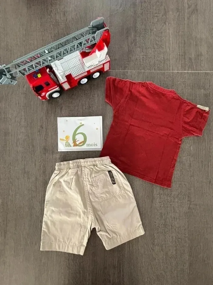 Ensemble t-shirt + bermuda Marque : Timberland Taille : 6 mois 100% coton Comme neuf