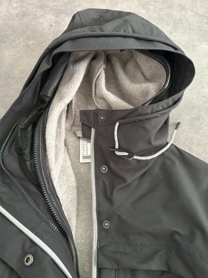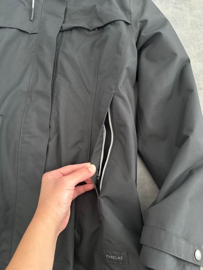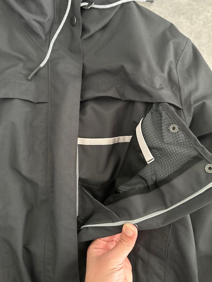 Veste en excellent état comme neuf Veste avec capuche et polaire chaud amovible avec 2 poches voir photo imperméable 3 Poches zip voir photos Ceinturage de la taille grâce au bouton et serrage au poignet grâce au skratch Porte 2 ou 3 fois