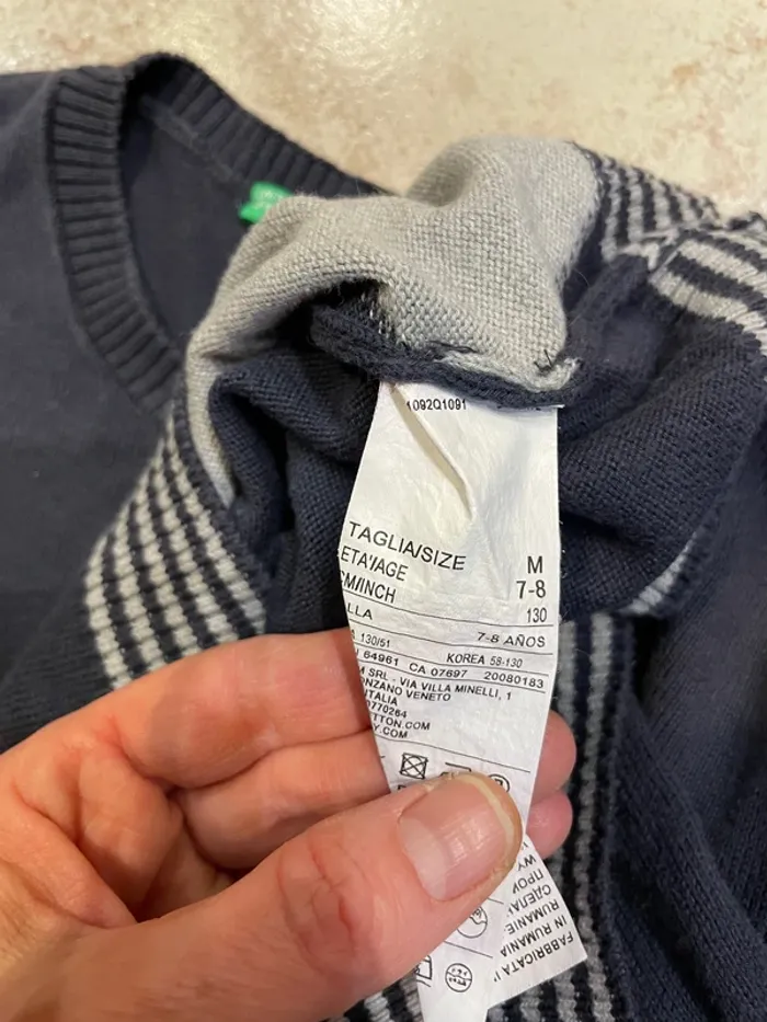 Pull fin de marque Benetton (la couleur est plutôt bleue marine foncé, pas noir) Taille 7-8ans