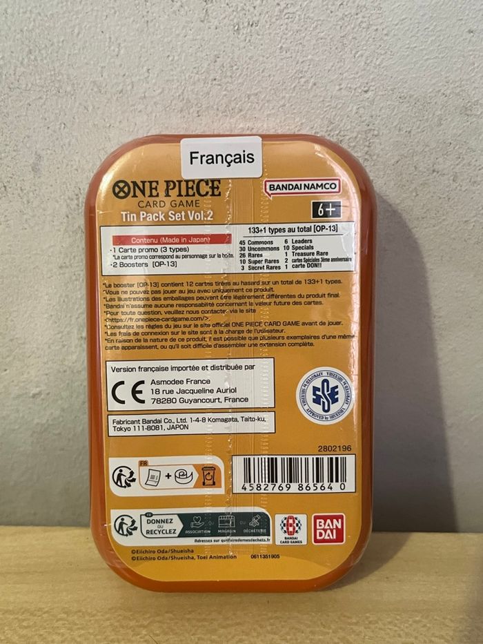 One Piece Tin Pack vol 2 🔍 | Neuf et sous scellé Contient : - 2 booster OP13 Remise en main propre sur paris possible ✅ Envoyez moi un message pour plus d'informations ou des photos