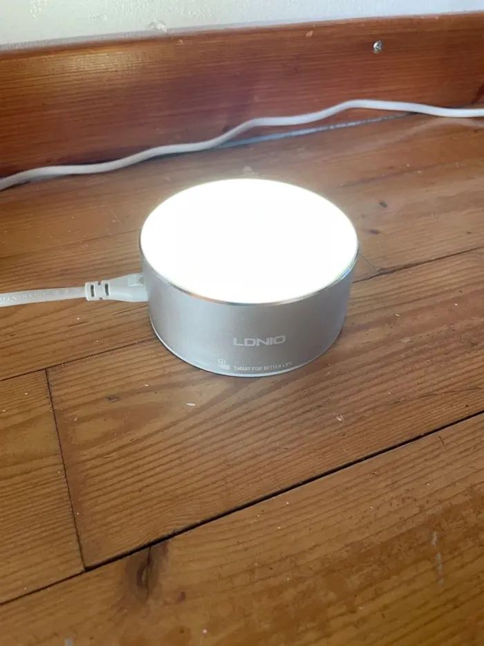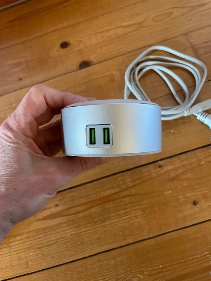 Petite lampe LED Idéale en lampe de chevet ou en veilleuse pour chambre d'enfant. S'allume par contact tactile (au toucher), 3 niveaux de lumière. Il y a un emplacement pour brancher des câbles usb dessus.