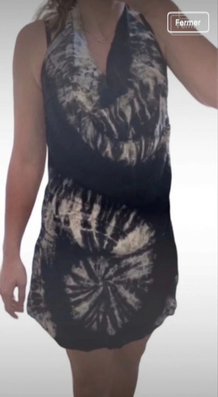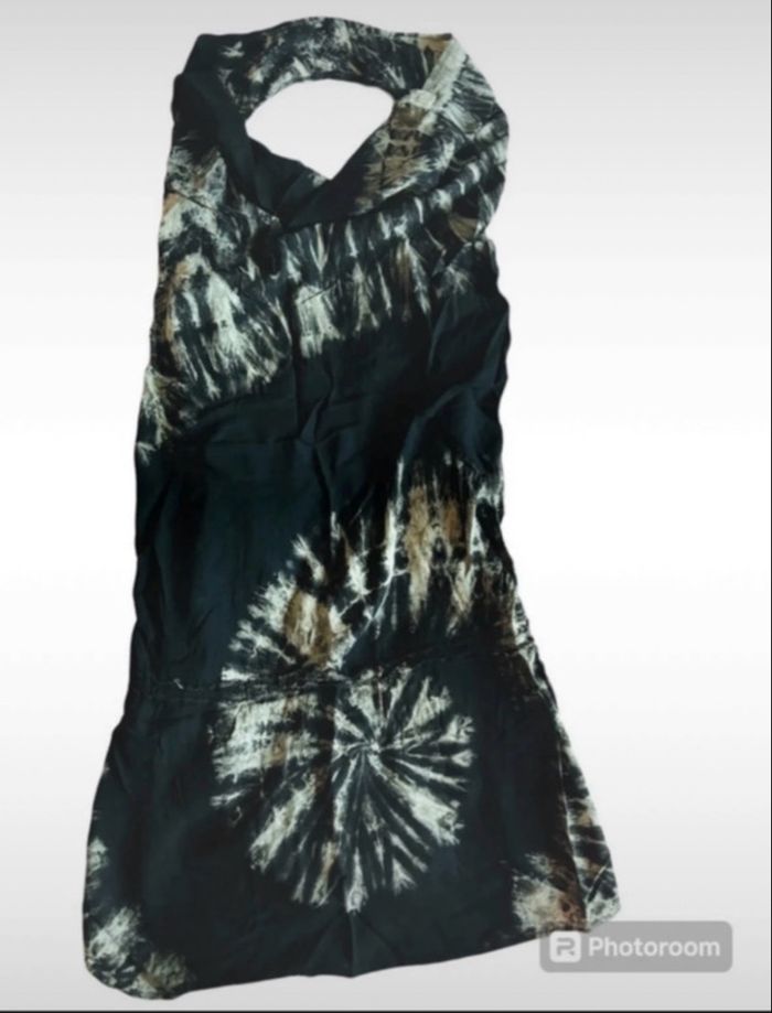 robe légère d’été noir et marron clair , peut se resserrer à la taille, courte, dos nu taille unique mais correspond plus à du S voir XS 2 mini trou sur le col ne se voit pas #eaguilillafemme