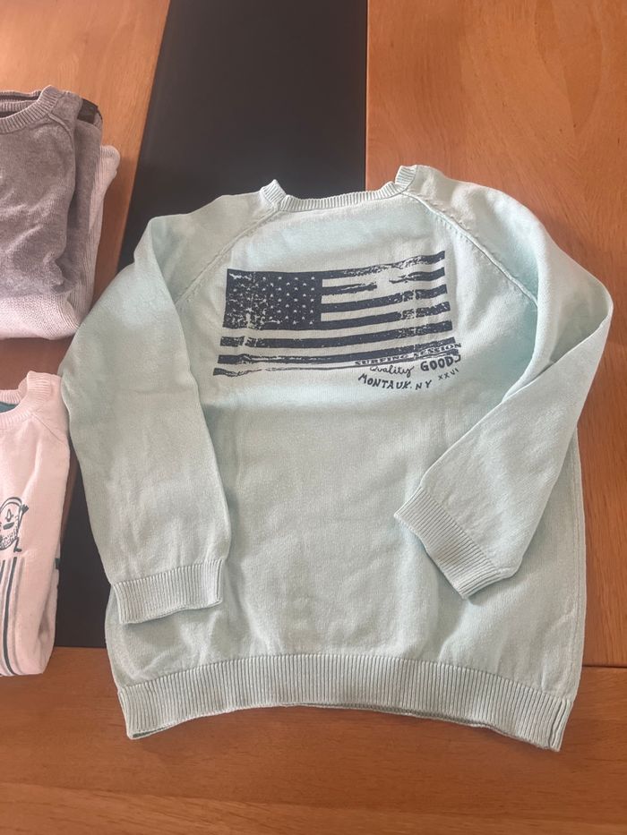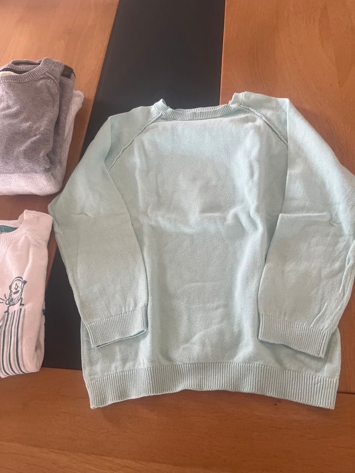 4 pulls assez léger parfait pour le printemps en 6 ans en très bon etat 1 tape à l’œil 3 vertbaudet