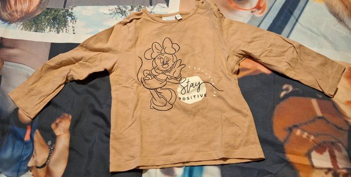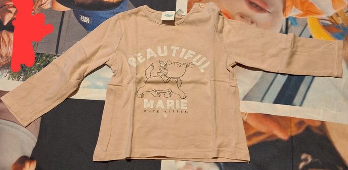 Lot de 3 Tee-shirts manches longues : Un rose clair Les Aristochats avec inscrit "Beautiful Marie" Marque Disney Baby Un beige Minnie inscrit "Stay Positive" Marque Disney Baby Un bordeaux avec un dessin d'écureuil avec un cœur et inscrit "Protect The Arctic" Marque Obaïbi Taille 18 mois Très bon état