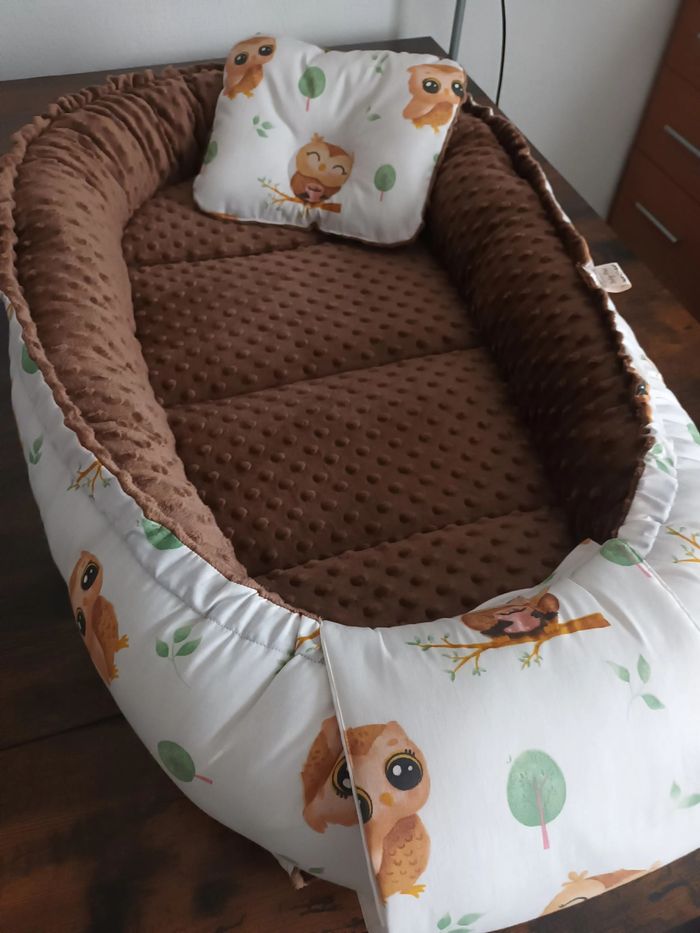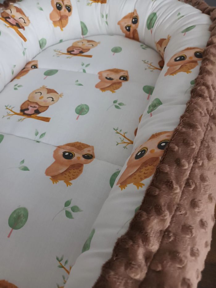 Réducteur lit bébé 0-6 mois environ acompagne de son petit coussin assorti 🌺🌟🌺 Réversible que vous permet d'utiliser les 2 côté Couleur marron en minky et motifs petits hibou 🌸🌸🌸🌸 Cousu ✋️ 🧵 Lavage à 30'degrés ⚠️ A ne pas utiliser de sèche linge ⚠️ Repassage doux uniquement sur le tissus motifs POSSIBILITÉ DE REFAIRE AVEC D'AUTRES TISSUS AU CHOIX SELON LES DISPONIBILITÉS ! Envoie rapide et soigné 😊