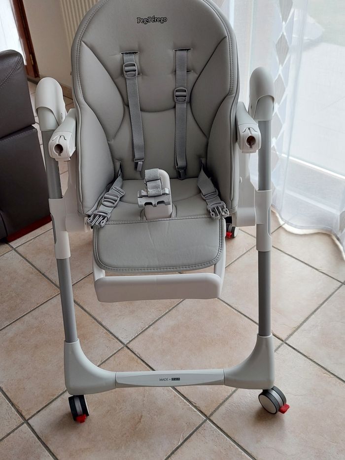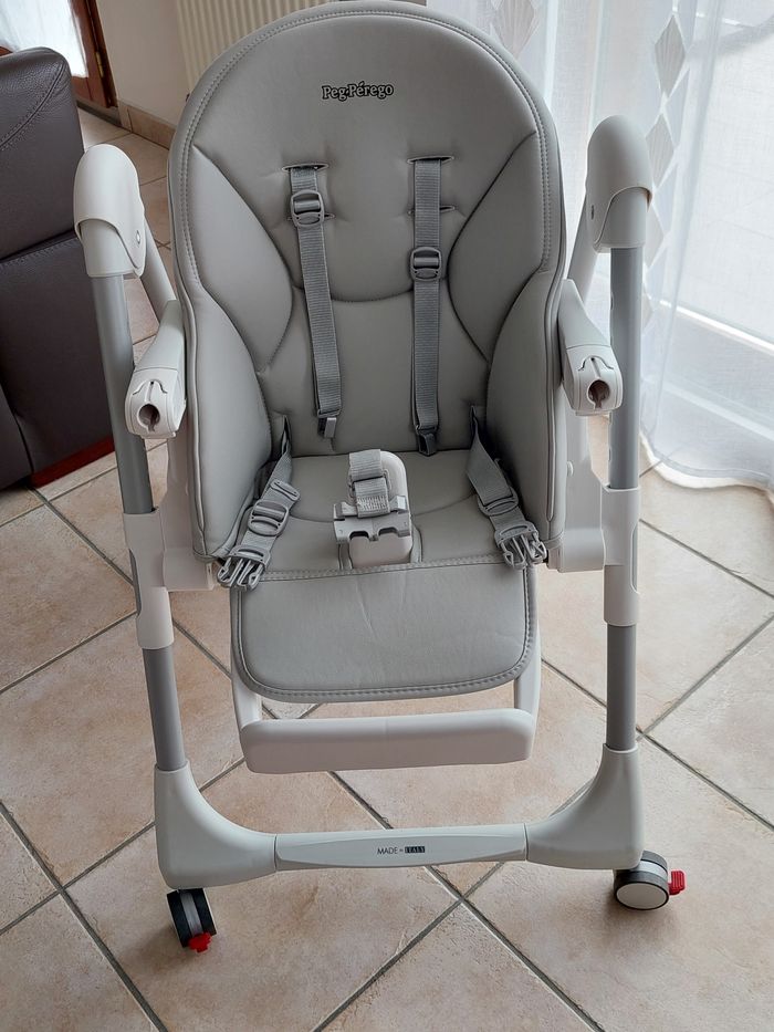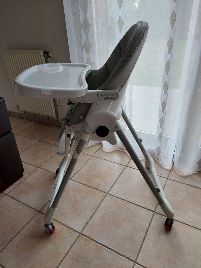 Modèle prima pappa (follow me) Réglable en hauteur, siège inclinable, tablette repas amovible, encombrement réduit (pliable). Bicolore (blanc et gris) Remise en main propre uniquement.