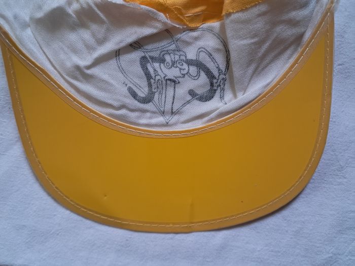 Casquette du tour de France des année 50 60? vintage Objet publicitaire Combat socialiste Couleurs jaune et blanc Visière en plastique Jamais portée, le visière abimée voir photo