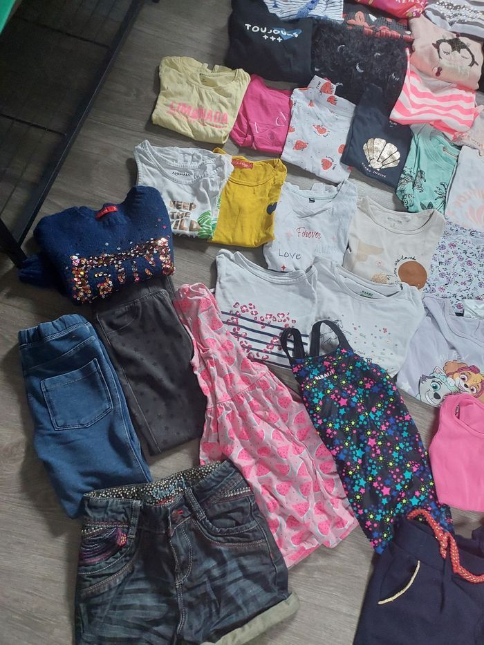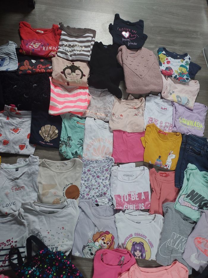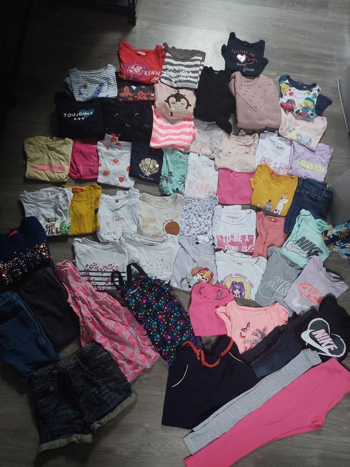 Bonjour Je vends ce gros lit de 55 vêtement fille Taille 5 ans Pas de taches Pas de trous Tee shirts manches courtes et longues Sweat Robe pull Pantalon Lehging Short en jeans Maillot de bain Débardeur Robe été Robe tee shirt nike ... Marque différentes dont kiabi, orchestra, nike ...