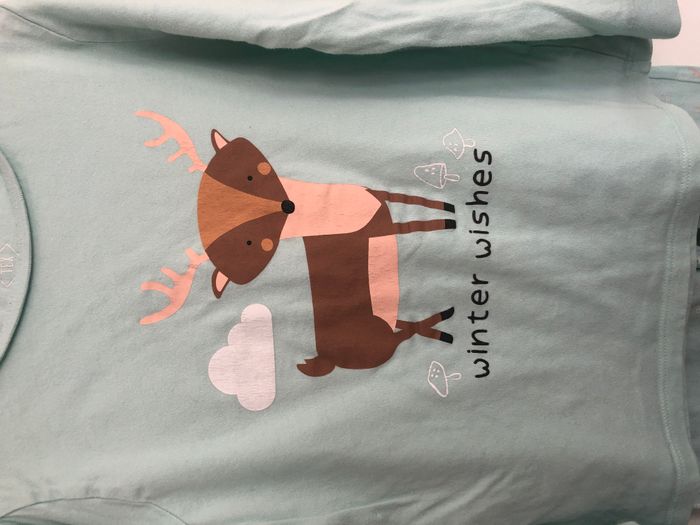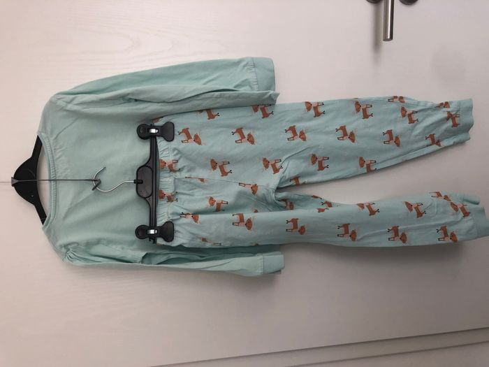 Joli pyjama fille, 2 pièces, composé d'un haut manches longues et d'un pantalon élastiqué à la taille. 100% coton Motif renne Marque Tex Taille 7-8 ans Une petite tâche à l'arrière de la manche.