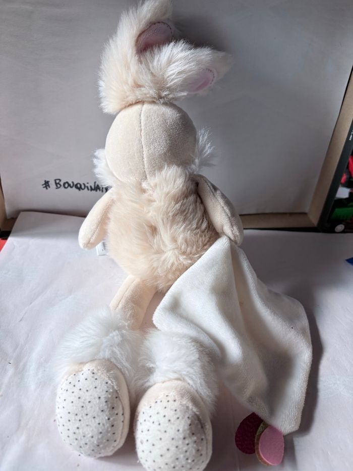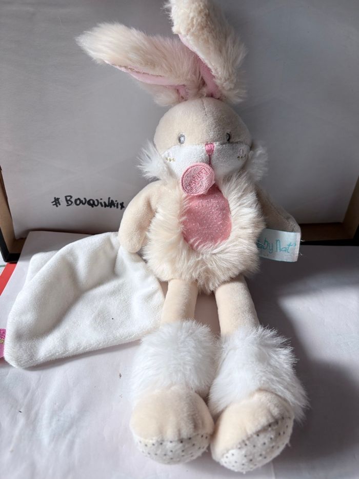 Doudou Lapin Baby Nat' - Beige et Rose Pailleté avec Mouchoir Lapin papuche 38 cm En bon état comme sur les photos gp #doudoulapin #lapinbabynat #doudoubouquinaix