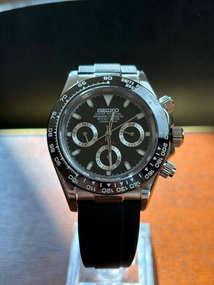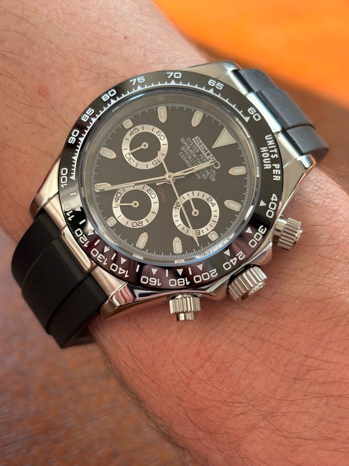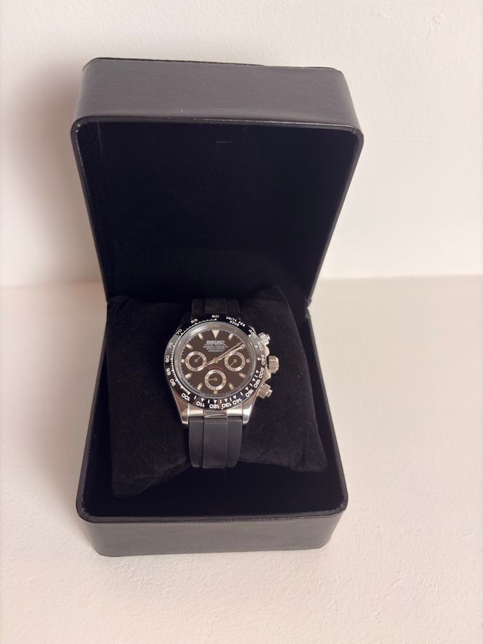 Caractéristiques: • Verre : saphir (anti rayures) • Mouvement : VK63 (chronographe) • Bracelet : caoutchouc premium • Fournie avec boîte de protection • simple à régler • Envoi sous 24h Vidéo de la montre disponible et envoyée sur demande avant l'achat.N'hésitez pas à me contacter pour toute question ou information supplémentaire. #montre #homme # saintvalentin