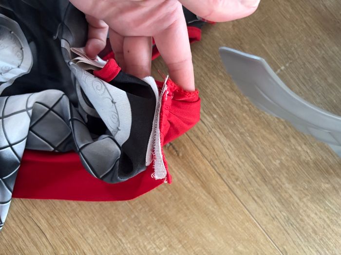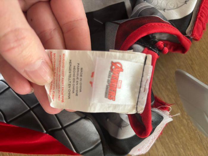 Déguisement Thor Avengers taille M enfant 7/8ans : pantalon avec pieds sur chaussures , cape à scratch , marteau solide ( pas en mousse ) , casque