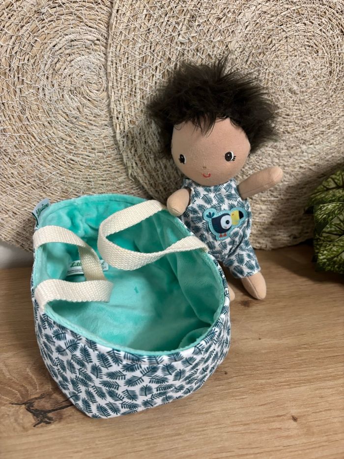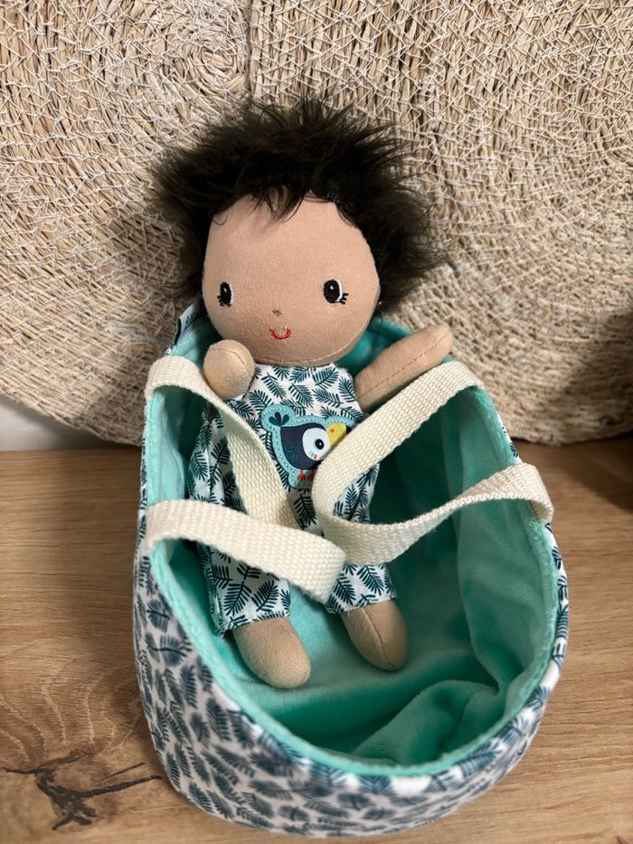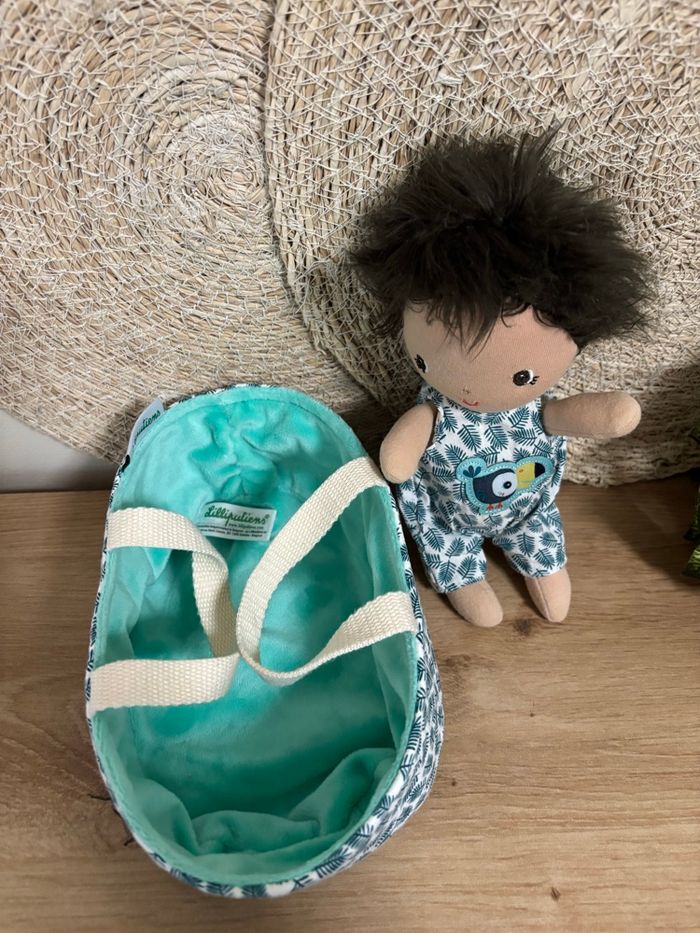 Poupon tissu ari avec son couffin lilliputiens  - photo numéro 1