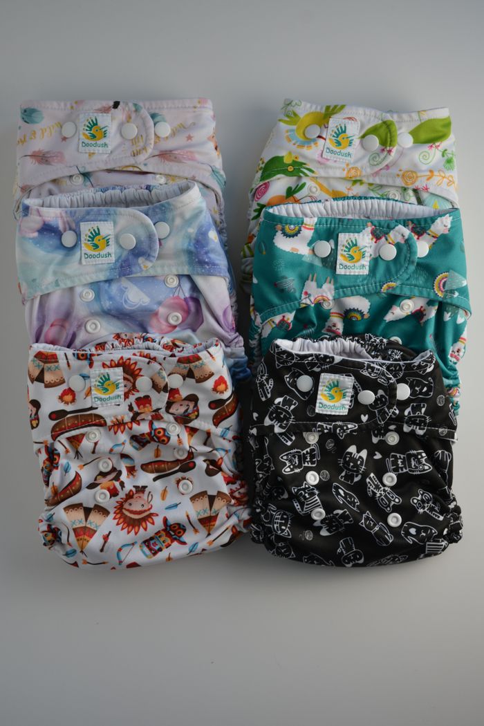 Lot de 6 couches lavables, modèle à poche, évolutif, de la marque Doodush. Taille XL prévue pour les bébés de 9 à 18kg. Un insert (vendu à part) se glisse dans la poche prévue à cet effet. Intérieur Coolmax. Cette couche est en très bon état, sans tâche. Les élastiques sont fonctionnels. Etant professionnelle et membre du réseau "Couches lavables", chaque couche a été soigneusement décrassée et désinfectée avant la mise en vente. Rien à faire à la réception, les couches sont prêtes à être utilisées ! N'hésitez pas à m'envoyer un message si vous avez des questions sur l'utilisation des couches lavables ou si vous ne trouvez pas votre bonheur dans la boutique, d'autres couches sont en attente de mise en vente. #LesCouchesdeBomaDoodush #LesCouchesdeBomaEvolutive