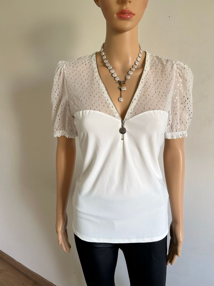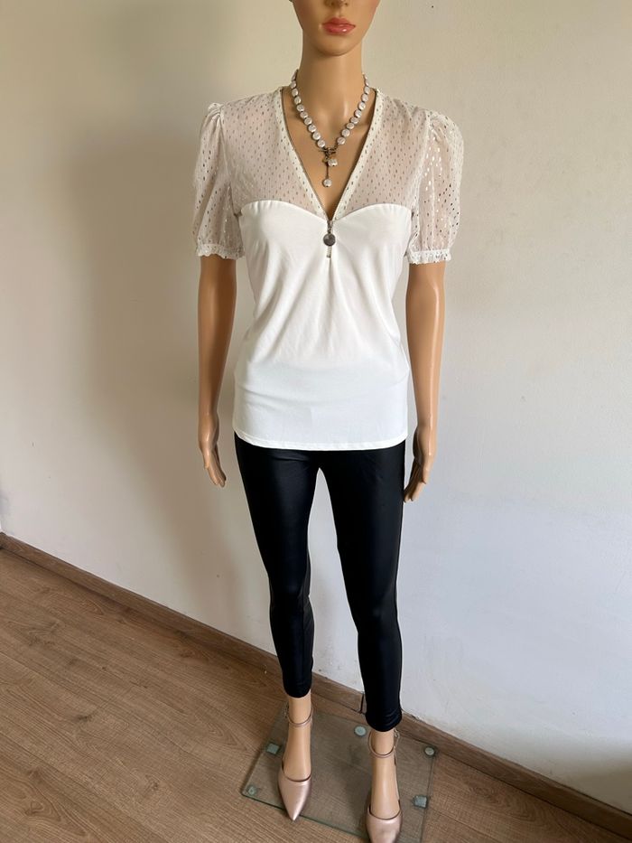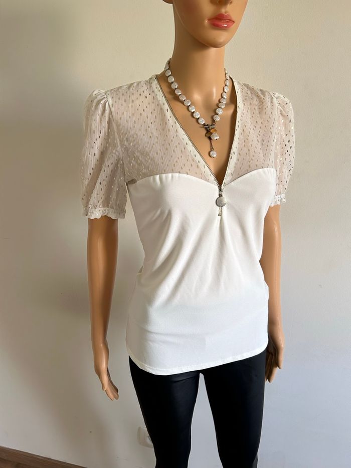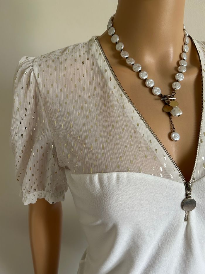 Haut blanc écru et doré neuf Morgan taille M (valeur 35€) - photo numéro 5