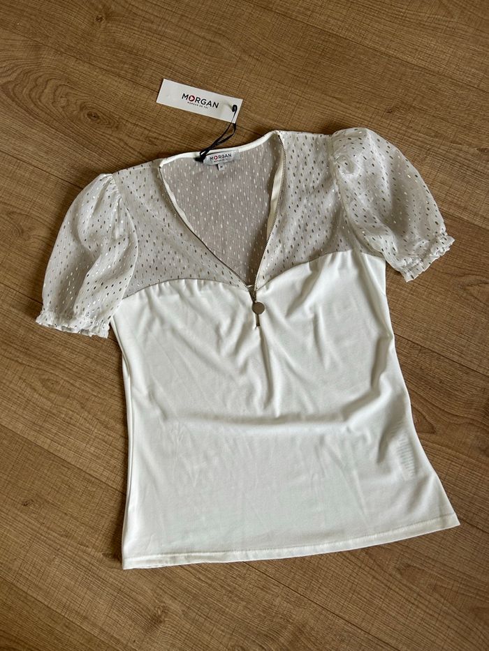 Haut blanc écru et doré neuf Morgan taille M (valeur 35€) - photo numéro 2