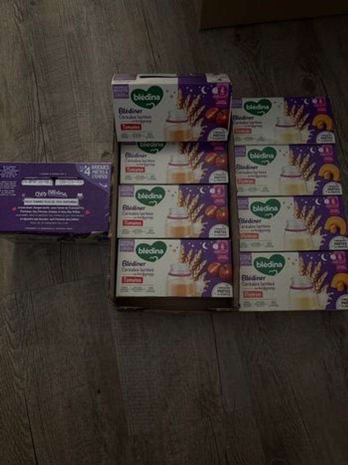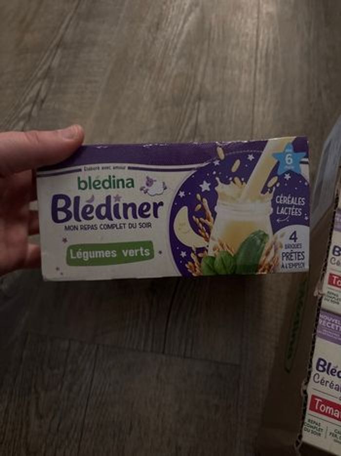 Vend Blediner 6 mois 4 légumes verts / DLC : 08/03/2026 8 potiron / DLC : 15/06/2026 8 tomates / DLC : 21/03/2026