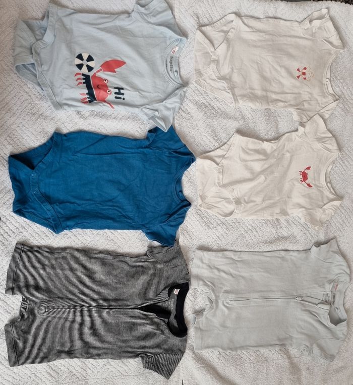 tres bon etat 4 bodys manches courtes taille 2-6 mois 2 grenouillères taille 2-6 mois 100% coton Marque Lupilu de chez lidl