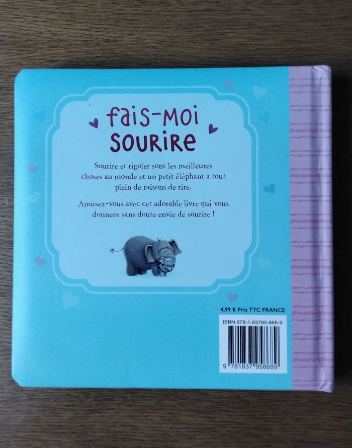 Livre Fais moi sourire Que vous pouvez personnaliser si vous le souhaitez sur la première page Une histoire d un petit éléphant que plein de raison de rires Édition Igloobooks #moreau36_livre_enfant