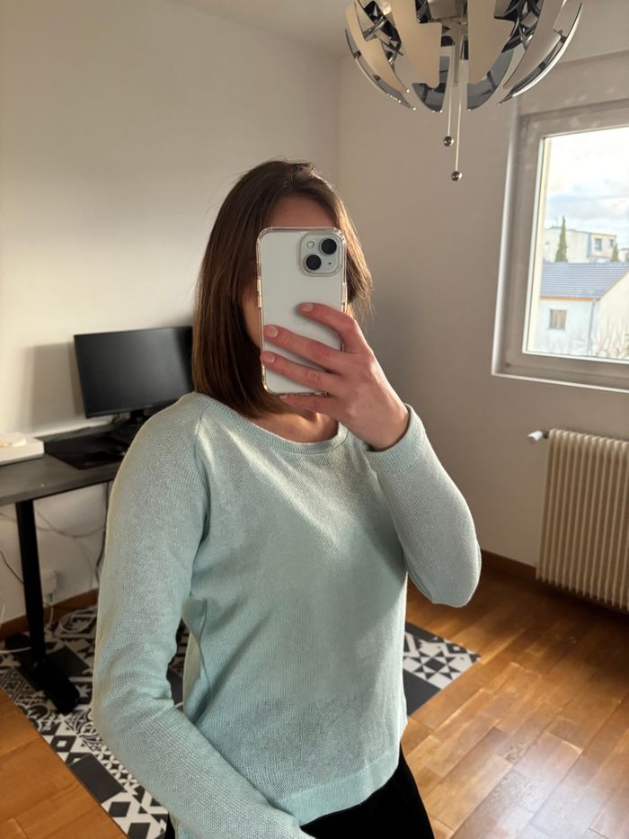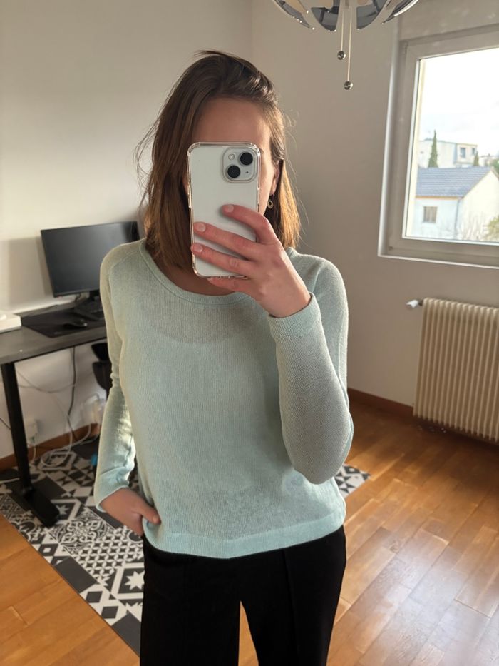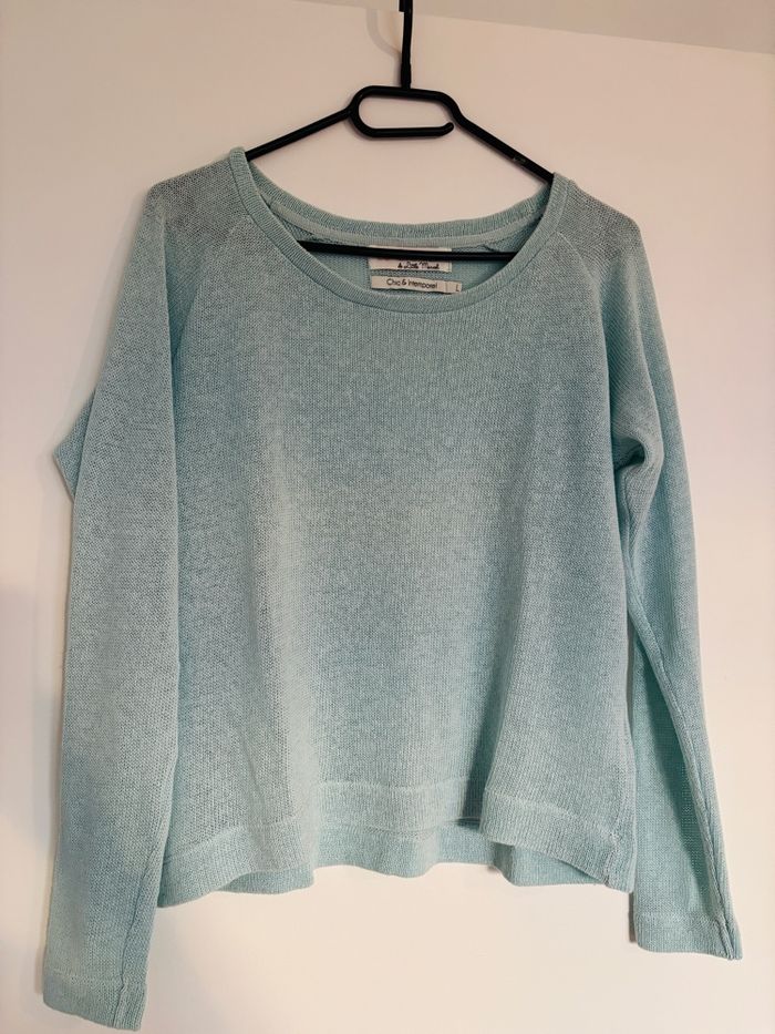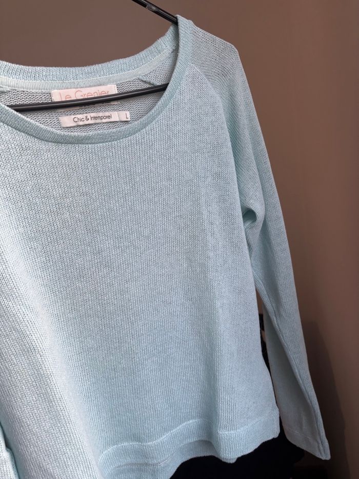 Pull en maille bleu ciel. Taille L mais correspond plutôt à une taille M
