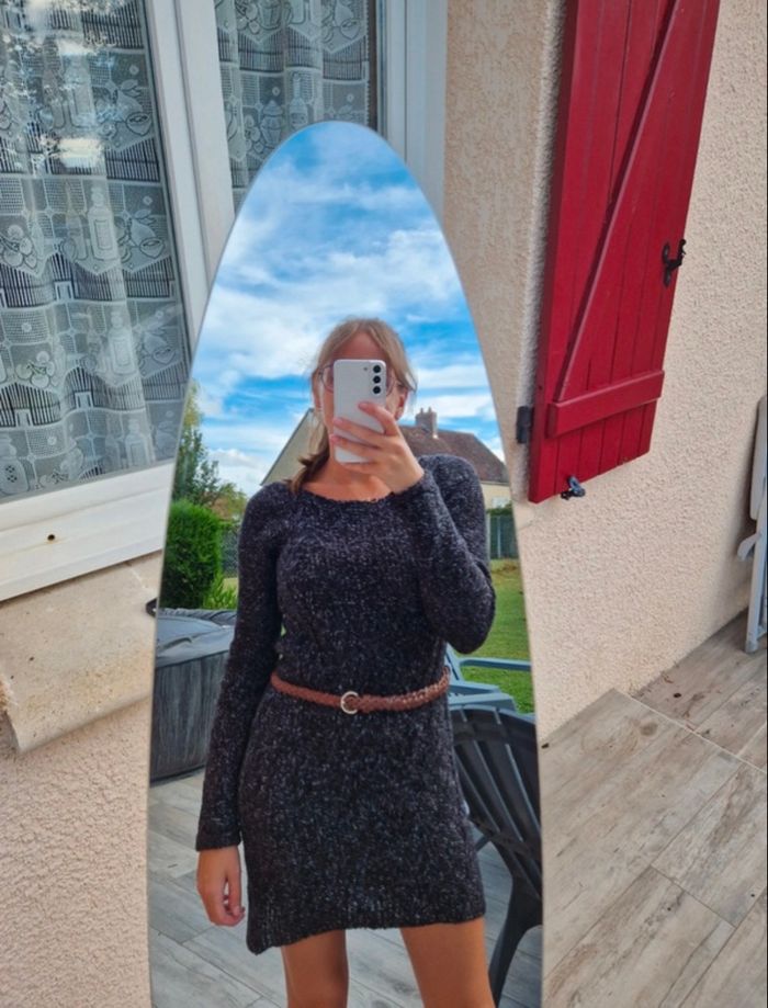 Notée 18ans, 162 cm sur l’étiquette mais je porte habituellement du S et elle me va. Robe vendue avec la ceinture qui est un peu abîmée.