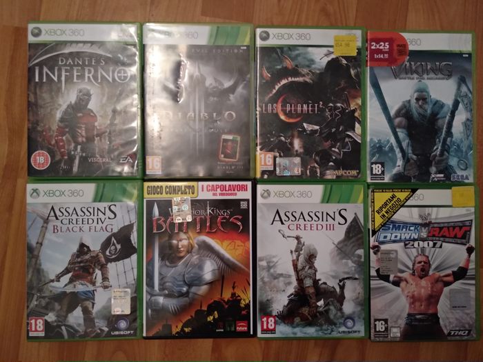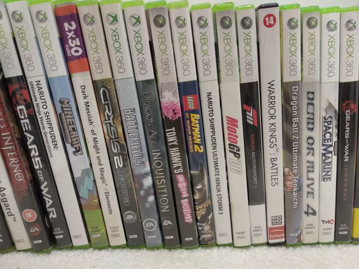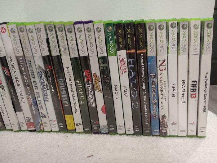 🚫Tout achat sans contact au préalable sera ANNULE🚫 Les jeux sont en très bon état et fonctionnent correctement, vidéos à l'appuis :) 📹💿📸 📍Vendus à l'unité, PRIX selon votre choix: - Gear of War = 5euros - Dark Messiah: Might and Magic Elements= 10 euros - Space Marine= 5euros - Gear of war Judgement= 5euros - Naruto shippuned ultimate ninja storm= 5 euros - Battlefield 4 = 5euros - Crysis 2 = 5euros - Minecraft = 5euros - Dragon Age Inquisition = 5euros - Naruto shippuned ultimate ninja storm 3 = 5euros - Dead or Alive 4 = 5euros - Moto GP 06 = 3 euros - Tony Hawk's American westeland = 25 euros - Lego Batman 2 = 5euros - Dragonball Z Ultimate tenkaichi = 10euros - F1 Forza Motorsport 3 = 5 euros - FIFA 09 = 3 euros - FIFA 13 = 3 euros - PES 08 = 3 euros - FIFA Street 3 = 3 euros - HALO 2 = 5 euros - Unreal Championship 2 = 10euros - Eternal Sonata = 10 euros - N3 Ninety Nine Nights = 10 euros - Dante's Inferno = 25 euros - Diablo = 10 euros - Lost Planet 2 = 5euros - Viking battle fro Asgard = 5euros - Assassins Creed IV Black Flag = 5 euros - Warrior Kings Battle 5 = 5euros - Assassins Creed III = 5 euros - Smack down VS Raw = 5 euros - Assassins creed Revelations = 5euros - Grand Theft Auto IV = 5euros - HALO combat evolved = 10 euros - Arcania gothic 4 = 5euros - CALL OF DUTY 3 = 10euros - kinect Adventures = 10euros - HALO 3 = 5euros - UFC Trainer = 5euros - Need for Speed Most Wanted = 49 euros