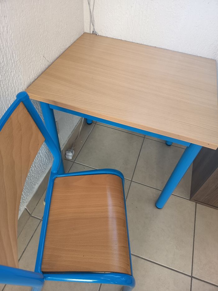 Mon enfant eu ce bureau quand il a eu 15 mois. C'est un bureau de maternelle... J'ai mis un marque, mais c'est un ça viens d'une école. Merci En vende bureau et chaise