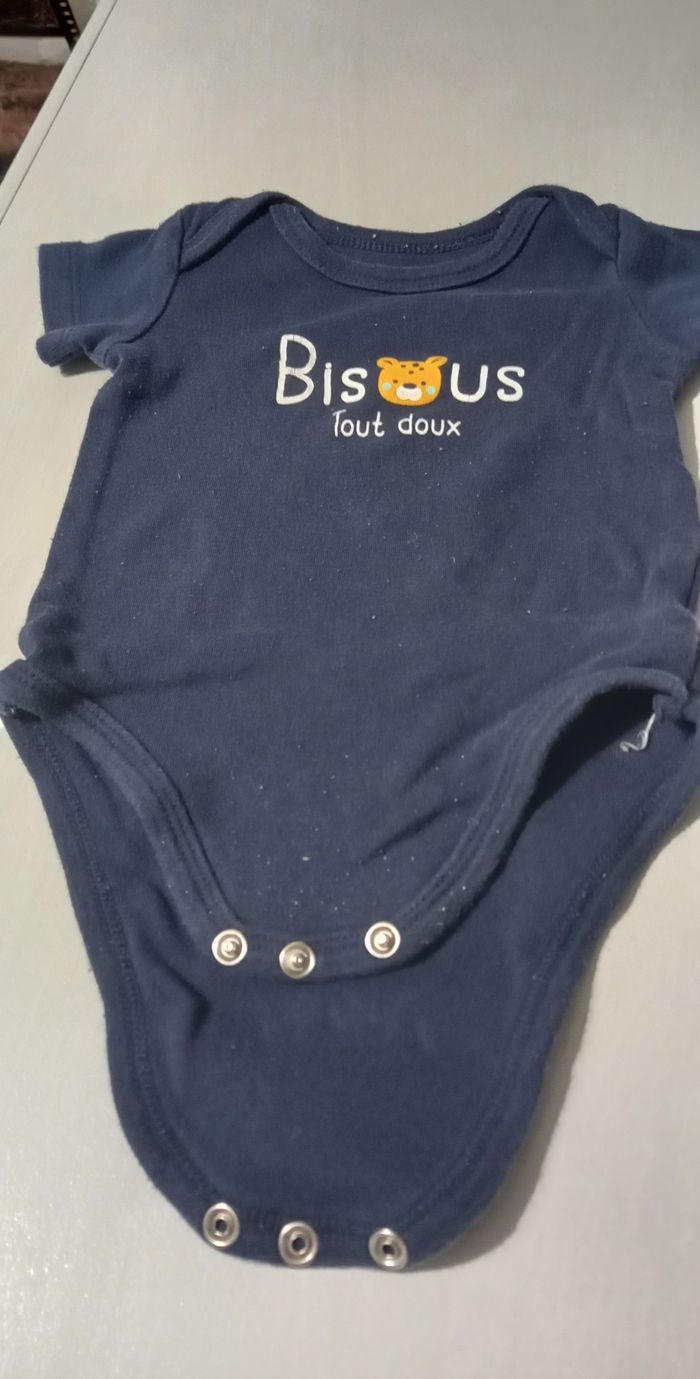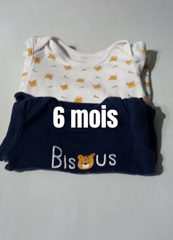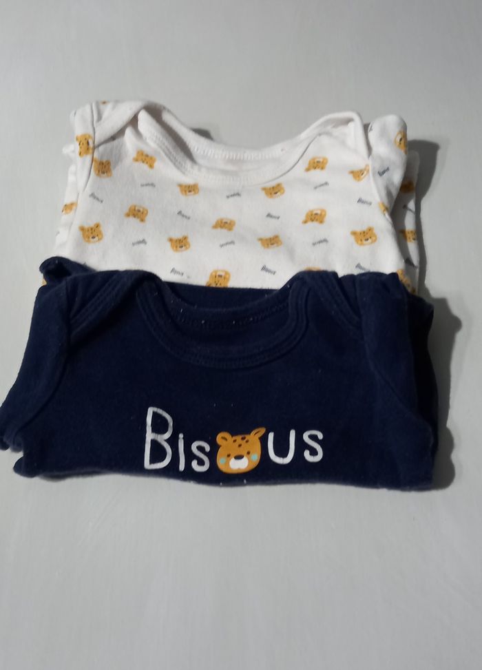 Lot 2 bodies Petit Cailloux 100 % coton 1 bleu marine bisous 1 blanc oursons Manches courtes Taille 6 mois #6moisenfants_imoddeco