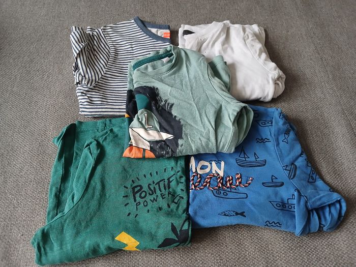 4 t-shirts manches longues 1 t-shirt manche courte 1 tache sur le tshirt blanc