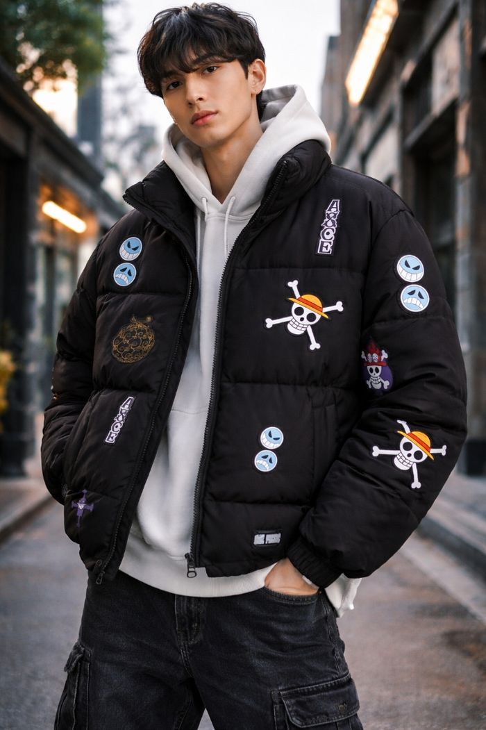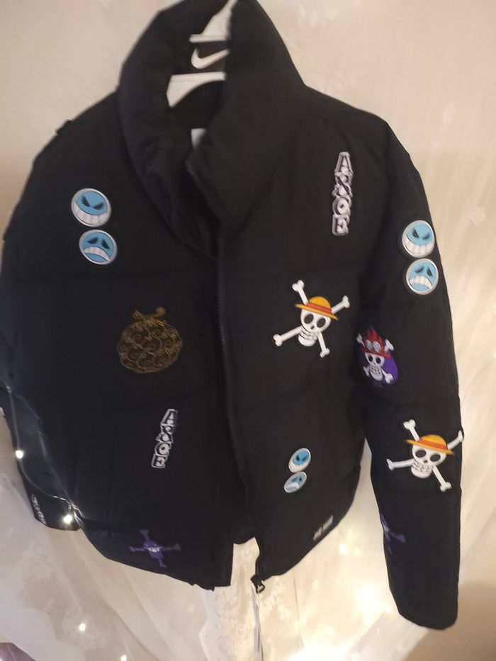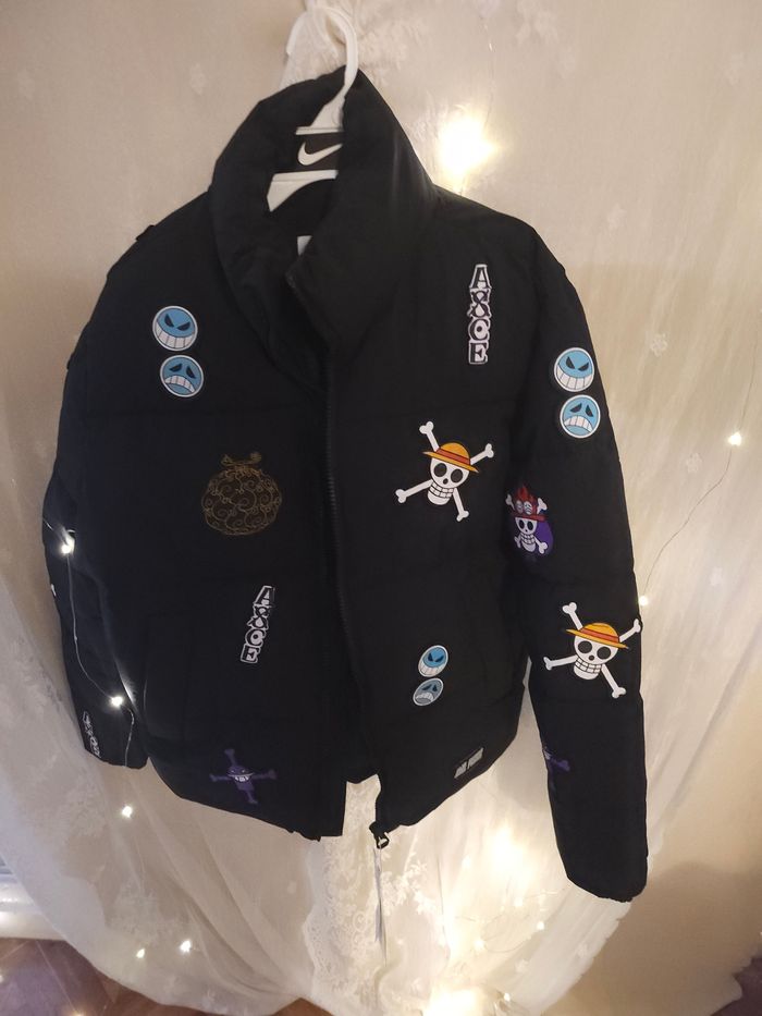 🔥 DOUDOUNE ONE PIECE – STYLE STREETWEAR TAILLE S 🔥 Magnifique veste noire rembourrée avec patchs et broderies inspirées de l’univers One Piece 🏴‍☠️ Un modèle ultra stylé qui ne passe clairement pas inaperçu. ✔ Taille : S ✔ Couleur : Noir ✔ Détails brodés (crânes, logos, patchs manga) ✔ Chaude et confortable ✔ Coupe tendance streetwear ✔ Super état 💥 Parfaite pour un look urbain, fan de manga ou outfit hiver stylé. Elle donne tout de suite du caractère à la tenue. À porter avec jean, cargo ou hoodie pour un effet 100% street 🔥