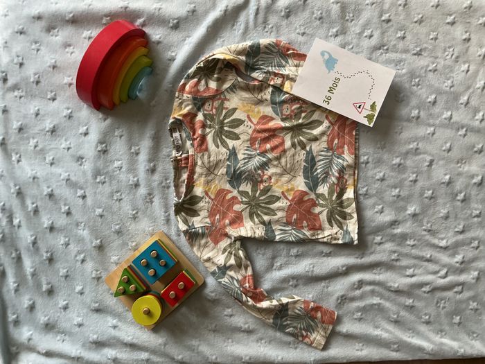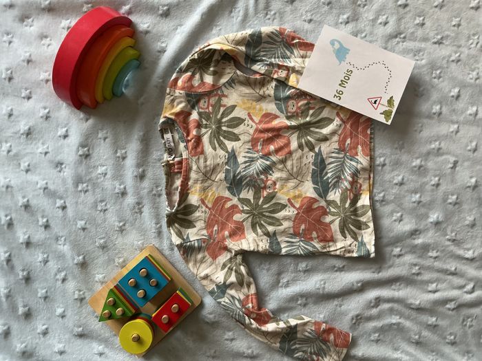 teeshirt manches longues imprimé savane sur fond blanc 36 mois NPO
