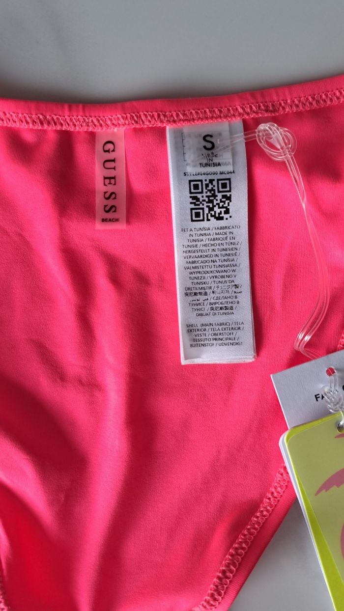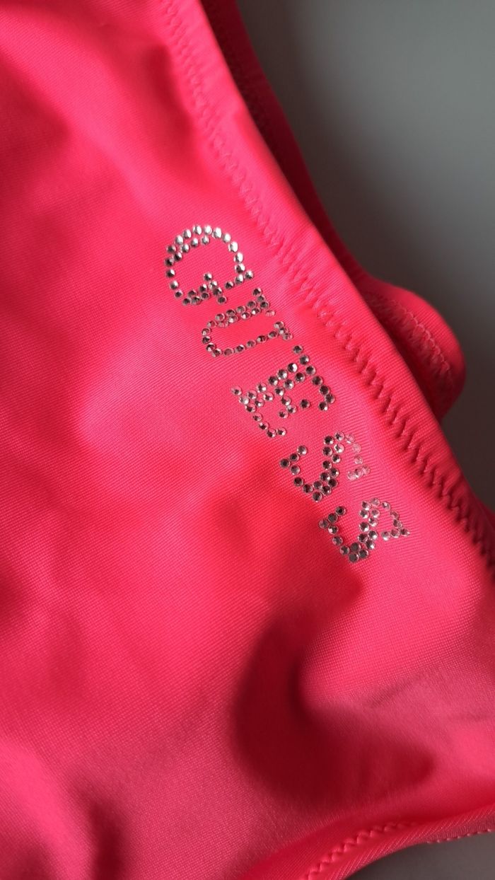 Conçu dans une matière douce et extensible en polyamide et élasthanne, il offre un excellent confort et épouse joliment la silhouette. Magnifique bas de maillot de bain bikini GUESS, au design féminin et élégant. Sa couleur fuchsia éclatante et ses strass raffinés apportent une touche glamour idéale pour la plage ou la piscine. Confectionné dans une matière douce, extensible et confortable, il épouse parfaitement les formes tout en restant agréable à porter. -Détails à strass -Liens latéraux réglables -Coupe bikini classique -Couleur fuchsia éclatante -Taille : S -État : neuf, jamais porté -Étiquette d’origine présente -Protection hygiénique intacte sur la partie intime Idéal pour la plage ou la piscine, à mixer avec le haut de bikini de votre choix. Envoi soigné et rapide. À noter que je filme l’intégralité de mes envois accompagnés de votre bon de transport. Cette démarche vise à assurer la sérénité et la sécurité de la transaction. 🙏