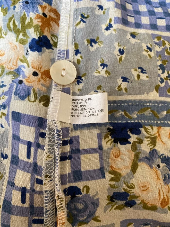 Chemise bleu en soie motif patchwork vintage  - photo numéro 4