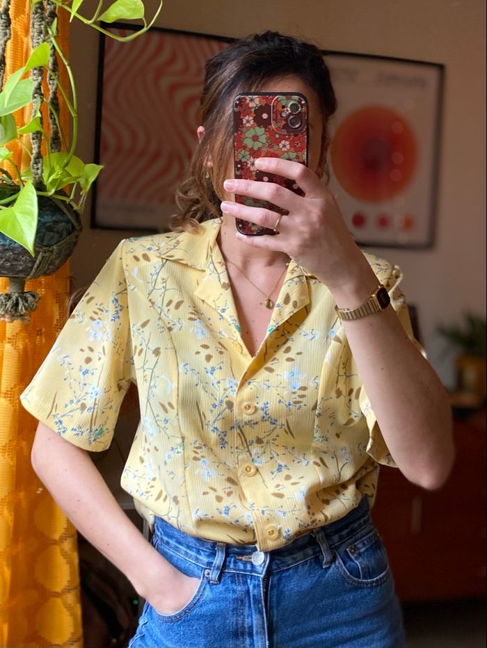 Chemisier jaune fleuri manches courtes 90’s  - photo numéro 1
