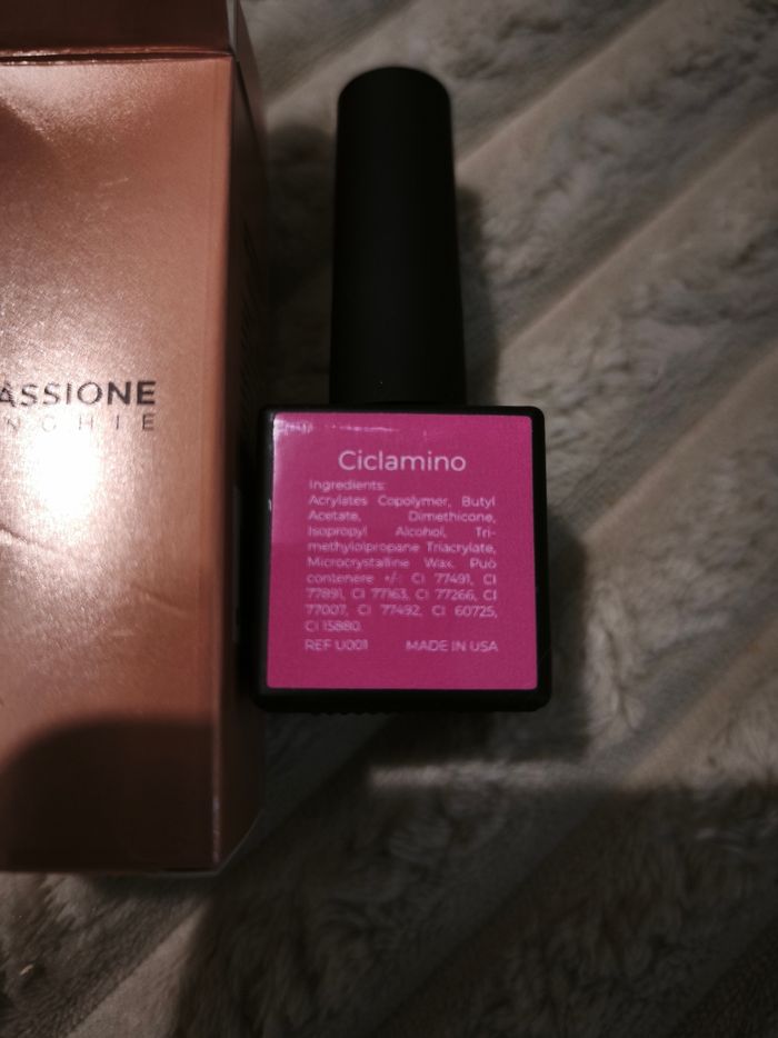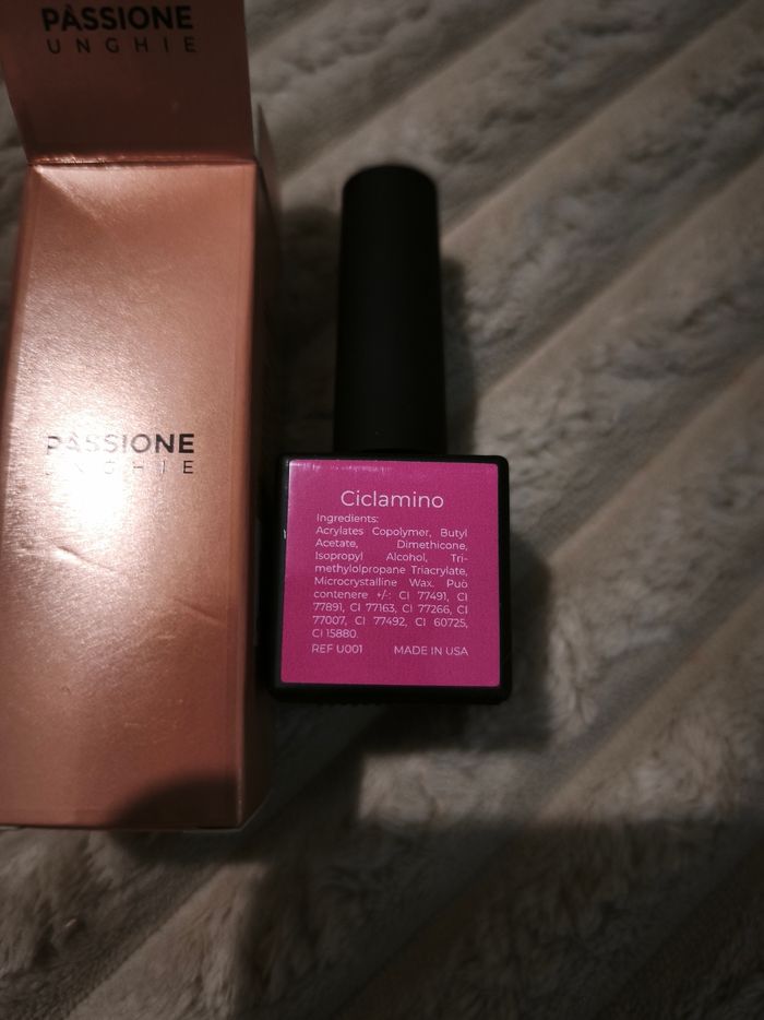 Vernis semi-permanent de couleur ciclamino ( de marque passion d ongles)
