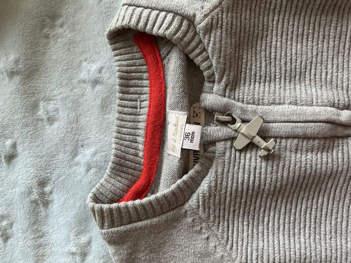 gilet zippé gris 36 mois pat et ripaton - photo numéro 1