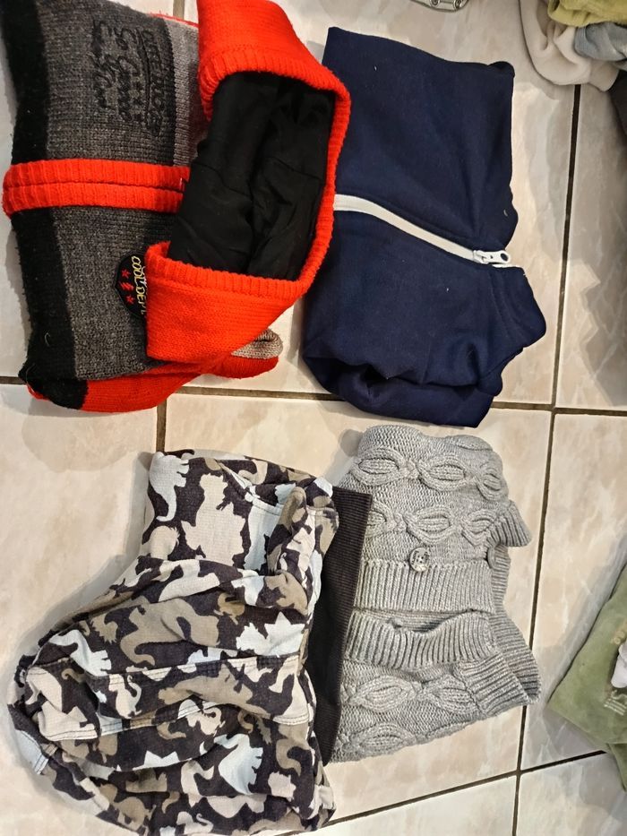 Bonjour, je vends un lot taille 9 mois garçon. Tout n'est pas en photo environ 100 pièces Il y a de tout pull, sweat, t-shirt manche longue, t-shirt manche courte, jean, pantalon, body , chemise , des ensembles de Noël