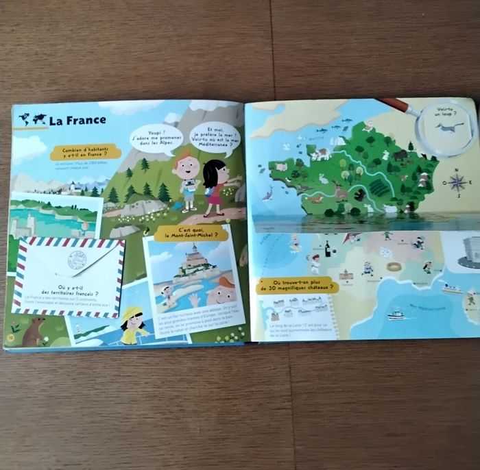 Le Kididoc autour du monde C'est un atlas animé ,mappemonde Des questions, des choses qui Ce soulève sur chaque page sur différents pays où lieux Édition Nathan #moreau36_livre_enfant