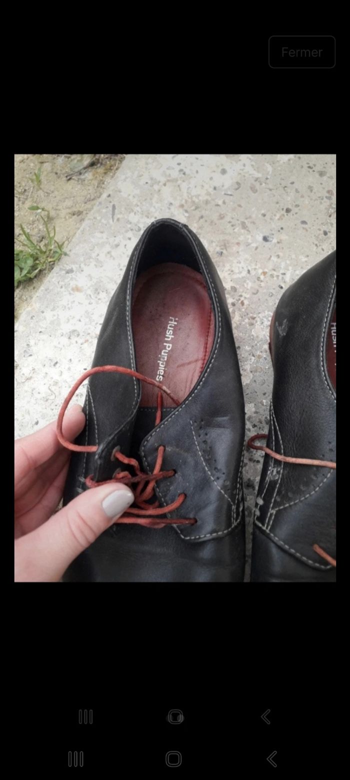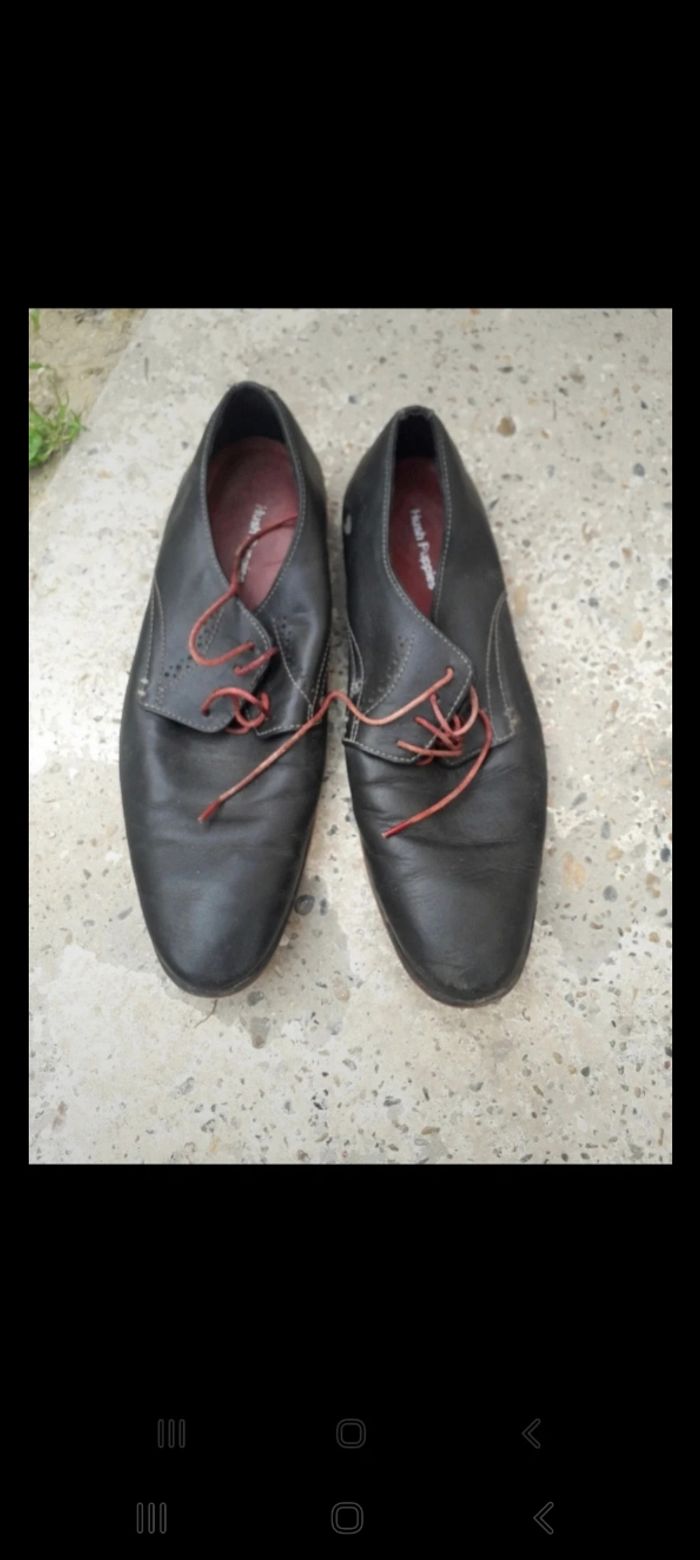 Chaussures habillées noires avec lacets rouges. Les lacets sont un peu usés. En cuir Pointure 43 Marque Hush Puppies