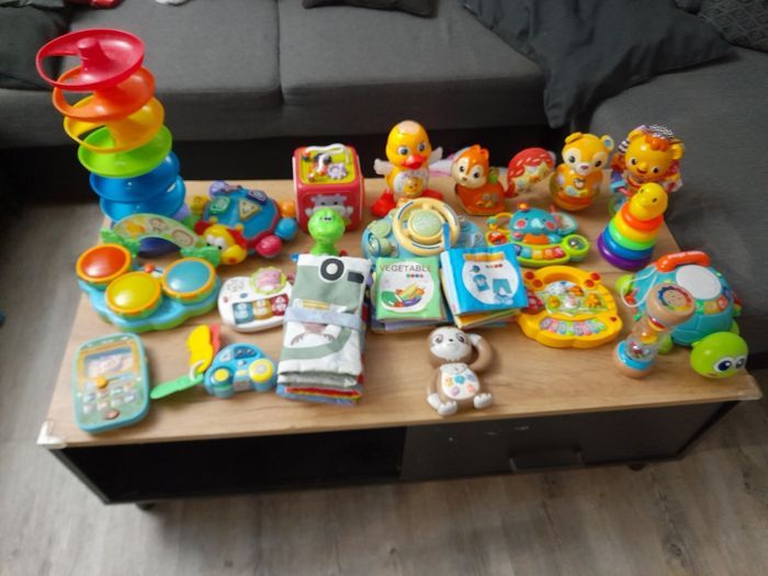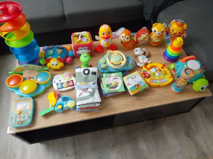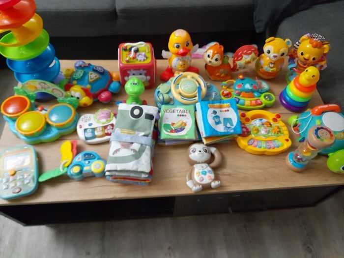 Vend lot de jouet 16 sont électronique on a enlever les piles pour éviter qu'il y est une fuite mais tous tester et d autre jouet divers non electronique plus d'autre jouet retrouvé 70€ le tout